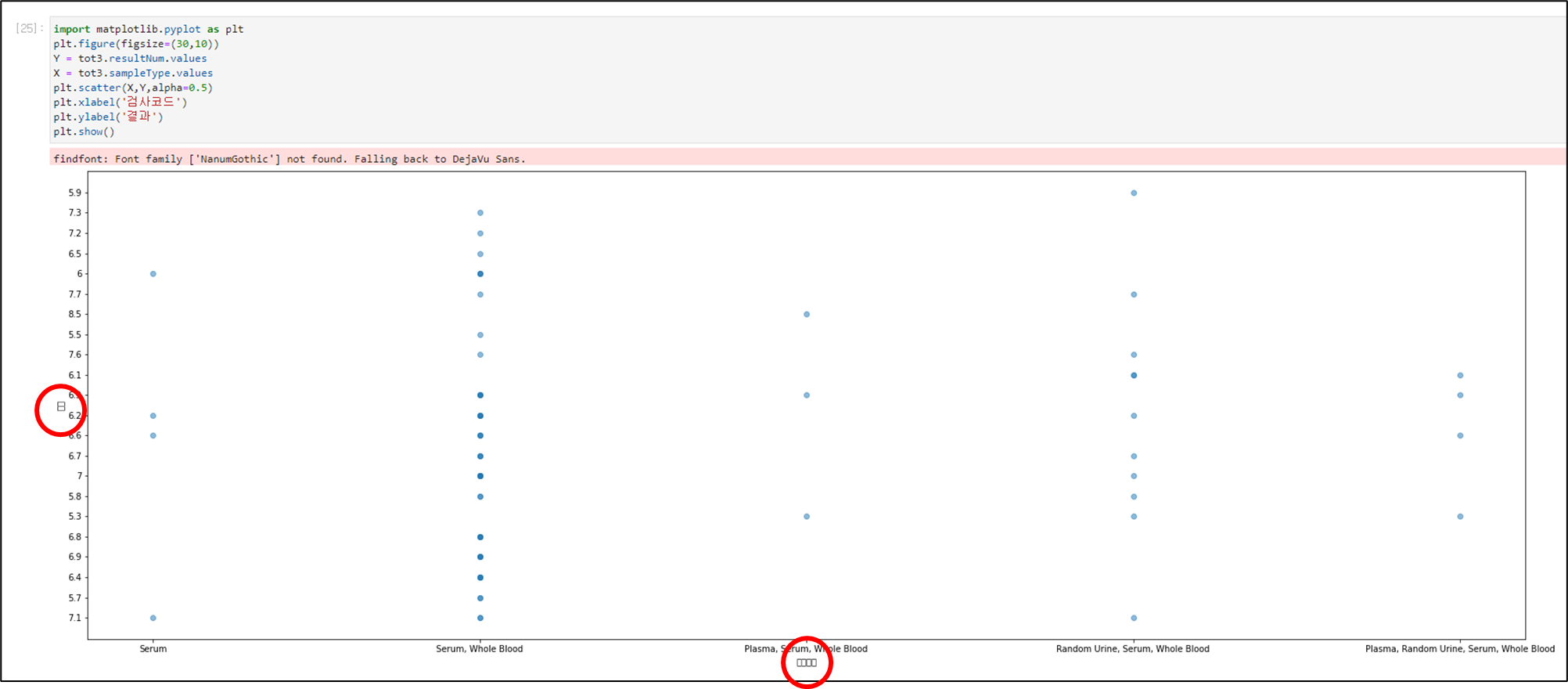 그래프 출력하면 그림처럼 한글이 네모 도형으로 나온다.