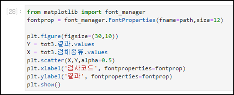 Matplotlib 그래프를 사용할때 한글이 깨져서 표시가 되었다.